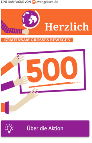 Die 500 Jahre (Reformation) sind das Stichwort. Gefragt sind besondere Herausforderungen, sogenannte Challenges. Auf der Aktionsplattform von evangelisch.de können ab sofort eigene Ideen eingestellt werden. Ob Events für einen Tag oder Herausforderungen über Wochen. Neben der Freude am gemeinsamen Tun soll der Erfolg teilweise sozialen Zwecken zukommen. Natürlich stehen auch schon einige Herausforderungen bereit...